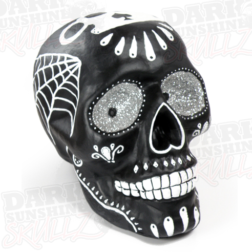 NOTE: Because human hands created this Darksunshine Skull, each piece varies slightly in finish and detail. We trust that this handmade skull will compliment your lifestyle. To keep your purchase in it's original state of craftsmanship, take care of your skull by using a clean, dry cloth and no cleaning agents. Refrain from dropping the peice as well.
